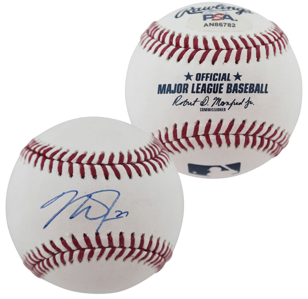 This Autographed Oml Baseball has been Personally Signed by Mike Trout of the Los Angeles Angels. This item is 100% Authentic and comes with a PSA/DNA Certification numbered Hologram. Please note that PSA/DNA no longer provides serial-numbered COA cards, and the attached PSA/DNA sticker will serve as the complete authentication for this item. The authenticity can be verified on Professional Sports Authenticators website.