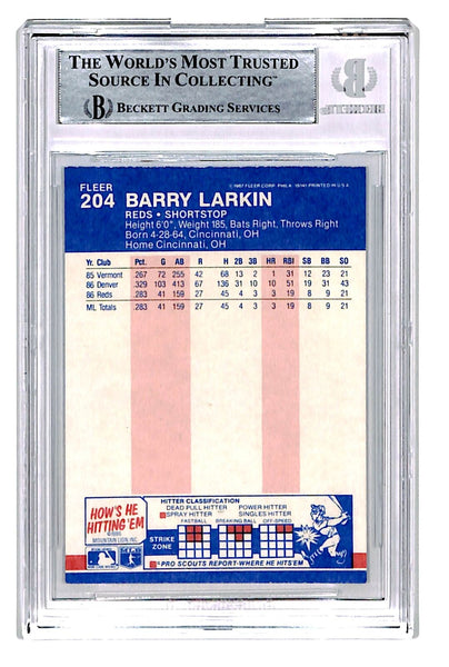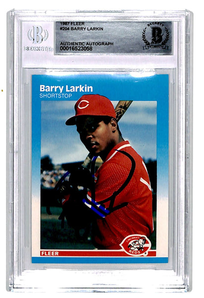 The number in the listing title is just an inventory sku for our records and is not the authentication number. The item pictured is a stock photo unless otherwise noted. This is a Cincinnati Reds 1987 Fleer #204 slabbed trading card that was personally autographed by Barry Larkin. Includes a certificate of authenticity from Beckett Authentication Services (BAS) and Denver Autographs.FREE SHIPPING within the USA on orders over $10!