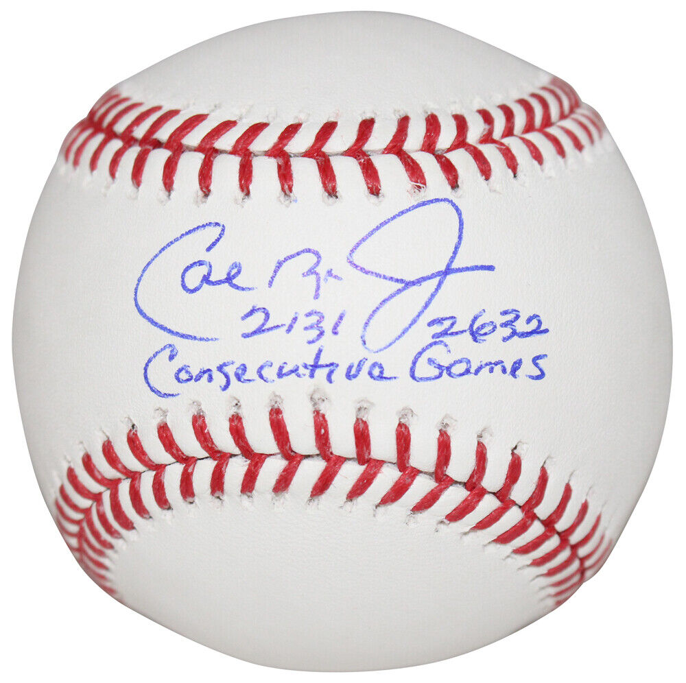 Cal Ripken Jr Autographed Baltimore Orioles OML Baseball w/Insc. FAN 40595 The number in the listing title is just an inventory sku for our records and is not the authentication number. The item pictured is a stock photo unless otherwise noted. This is a Baltimore Orioles Autographed baseball that was personally autographed by Cal Ripken Jr. with inscription "2131 2632 Consecutive Games". Includes a certificate of authenticity from Fanatics Authentication Services (FAN) and Denver Autographs.