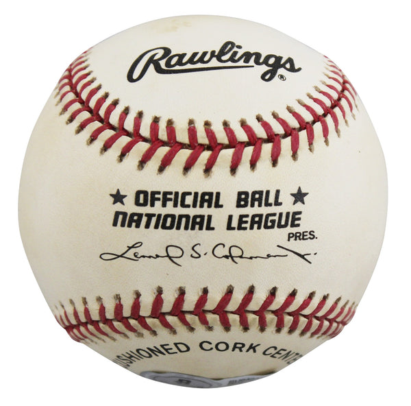 This Autographed Rawlings Official National League Baseball Leonard S. Coleman Jr. Baseball has been Personally Signed by Keith Hernandez of the St. Louis Cardinals. This item is 100% Authentic to include a hologram by Beckett Authentication Services. This item will come with an affixed Beckett Authentication Services (BAS) authentication sticker, which includes a scannable QR code to verify authenticity. Please note that Beckett no longer provides serial-numbered COA cards, and the attached BAS sticker will serve as the complete authentication for this item. The authenticity can be verified on Beckett Authentication Services website.