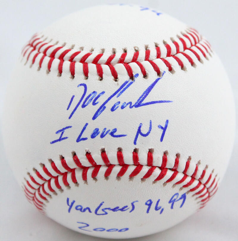 Doc Gooden Autographed Rawlings OML Baseball w/3 Inscriptions-Beckett W Hologram *Blue This is a Dwight "Doc" Gooden hand autographed Rawlings Official Game Ball Major League Baseball. Inscribed I love NY, Yankees 96,99,2000, Mets 84-94. This item has a Beckett Witness Authentication, which comes with a numbered sticker hologram and a QR code for verification. You can view this item on the Beckett website and it shows when and where the item was signed. It was signed either at a public autograph appearance or a private signing. This is a stock photo of the item. Although you may not receive this exact item, the item you receive is virtually identical, brand new, and in great shape.