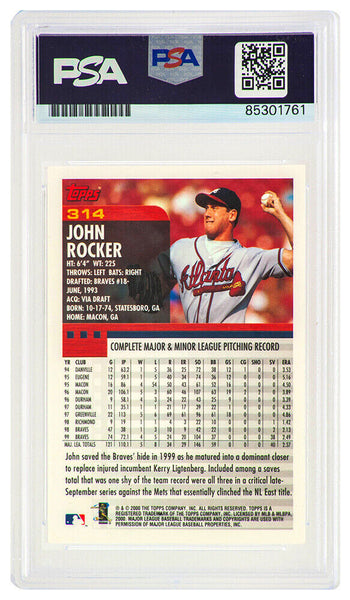 John Rocker signed Atlanta Braves 2000 Topps baseball trading card #314. The card has been authenticated and encapsulated by PSA/DNA and the authentication number can be verified online.