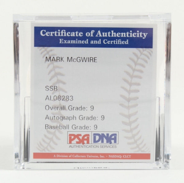 Rawlings Official Major League baseball that has been hand-signed by Mark McGwire (Oakland Athletics, St' Louis Cardinals). Included is a display case.The lot / autograph(s) includes an official PSA/DNA hologram and matching COA for authenticity purposes.Authentication: PSA COA