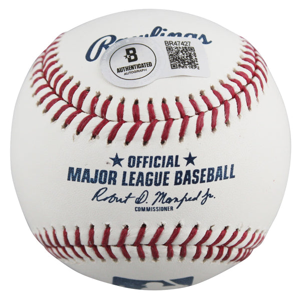 This Autographed Robert Manfred Oml Baseball with the inscription of "5714 K's" has been Personally Signed by Nolan Ryan of the Texas Rangers. This item is 100% Authentic to include a hologram by Beckett Authentication Services. This item will come with an affixed Beckett Authentication Services (BAS) authentication sticker, which includes a scannable QR code to verify authenticity. Please note that Beckett no longer provides serial-numbered COA cards, and the attached BAS sticker will serve as the complete authentication for this item. We have multiples of this same item. While the photographs are representative of this item, the size, placement and strength of the signature may vary. Each item is hand signed, therefore, each autograph is unique.