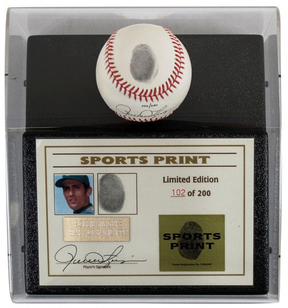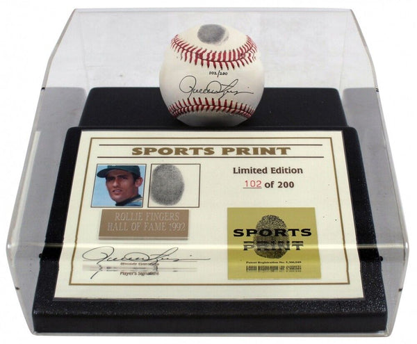 Rawlings Official American League baseball display. Hand-signed by Rollie Fingers (Oakland Athletics, HOF). The item is limited edition and hand-numbered out of #/200.This is a stock item and stock images may be used in this listing. The exact item you will receive will be of equal quality to the one pictured.The lot / autograph(s) includes an official Beckett Authentication Services serially-numbered hologram and matching COA for authenticity purposes.Authentication: Beckett COA