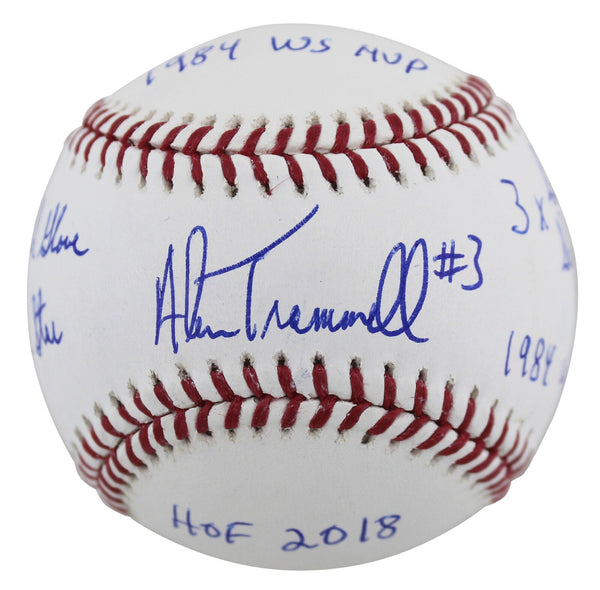 This Autographed Oml Baseball with the inscription of "HOF 18, 6x All-Star, 4x Gold Glove, 1984 WS Champs, 3x Sliver Slugger, 1984 WS MVP" has been Personally Signed by Alan Trammell of the Detroit Tigers. This item is 100% Authentic to include a hologram by Beckett Authentication Services. This item may come with the new Beckett Authentication hologram that has a scannable QR code rather than the traditional COA. If you would like to have a COA, you are welcome to reach out to Beckett for a printed certification once you receive your item. This is a BAS Witnessed Protection Program item which means a Beckett Authentication Service representative was present when this item was being signed. We conducted an autograph signing with Alan Trammell where multiples of the same item were signed. While the photographs are representative of this item, the size, placement and strength of the signature may vary. Each item is hand signed, therefore, each autograph is unique. This item can be verified through BAS Witnessed.