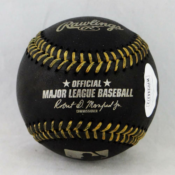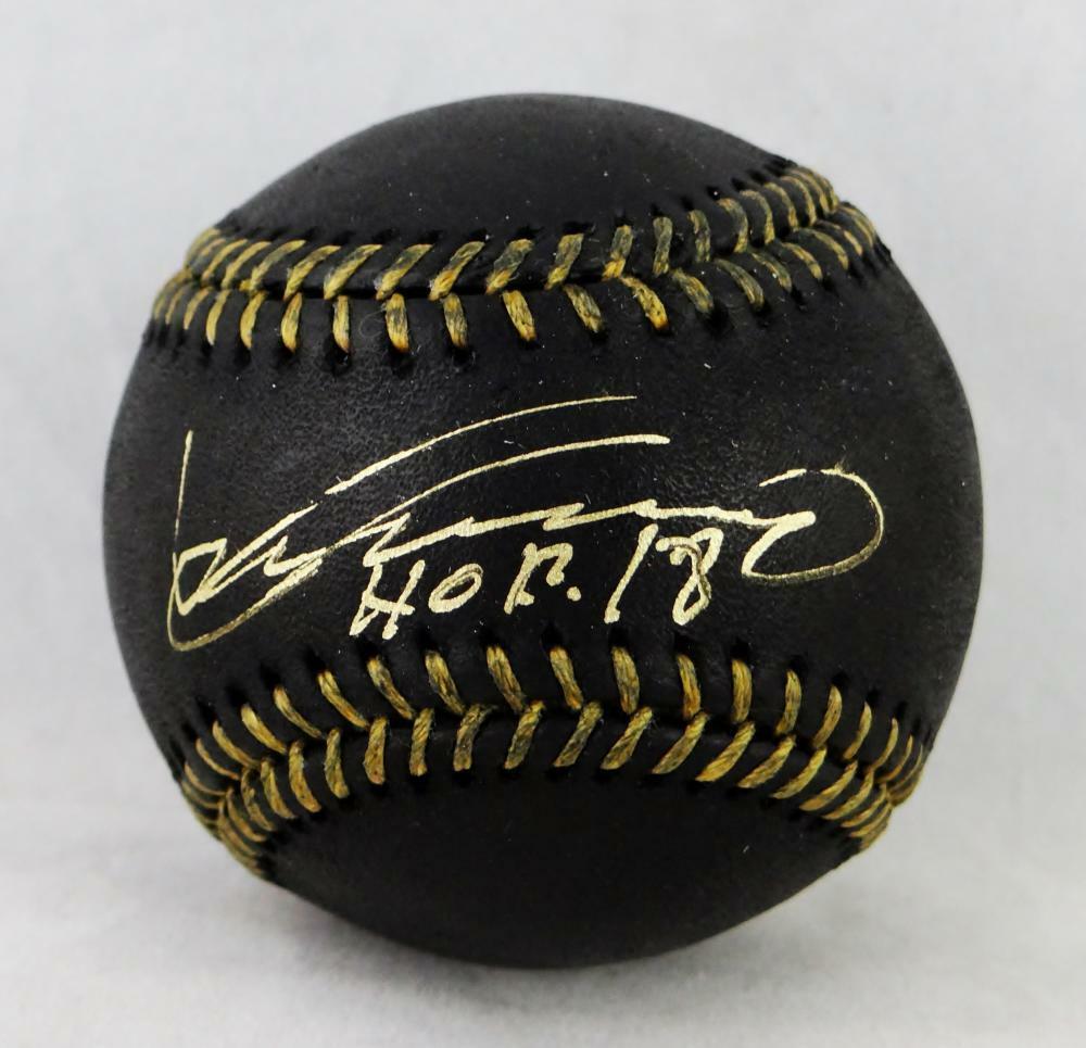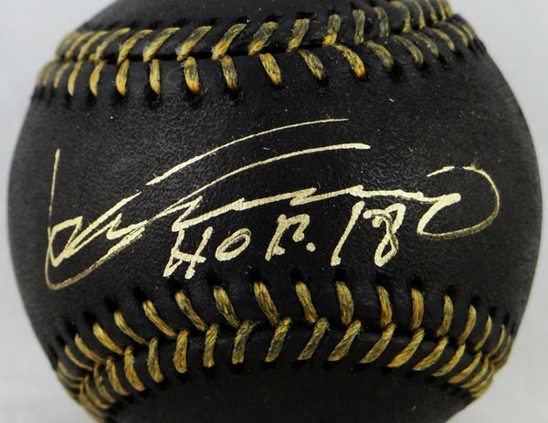 Vladimir Guerrero Autographed Rawlings OML Black Baseball w/ HOF 18 - JSA W Auth This is a Hand Autograph of Vladimir Guerrero on a Rawlings Official Game Ball Major League Black Baseball and inscribed with HOF 18. This item has a James Spence Witness Authentication, which comes with a JSA #'ed sticker and a matching JSA certificate of authenticity. You can view this item on the SpenceLOA website. It was signed either at a public autograph appearance or a Private Signing. This is a stock photo of the item. Although you may not receive this exact item, the item you receive is virtually identical and brand new in great shape.