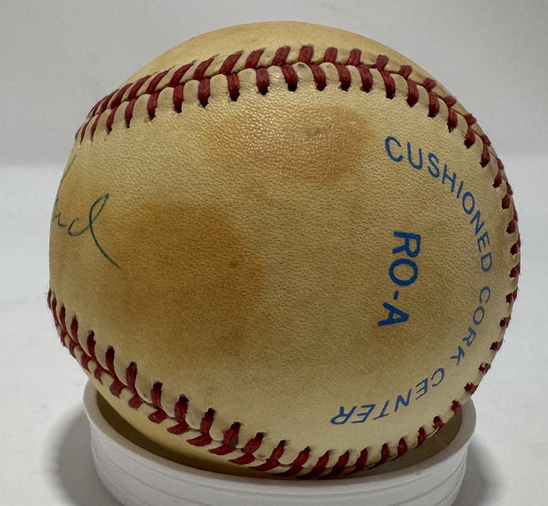 This item is an official American League Baseball hand signed by New York Yankees Hall of Famer WHITEY FORD. The signature is in blue ink pen. This would make a great addition to any Yankees collection! This item is guaranteed to be 100% authentic and will include a COA from JSA with matching serial numbers.
