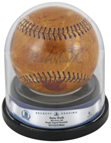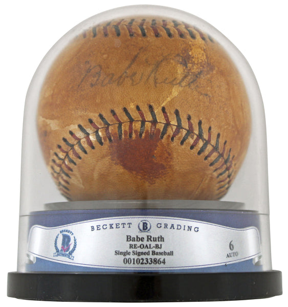 This Autographed Auto Graded 6 Ban Johnson Oal Baseball has been Personally Signed by Babe Ruth of the New York Yankees. This item is 100% Authentic, it comes graded, encapsulated and authenticated by Beckett Authentication Services. The authenticity can be verified on Beckett Authentication Services website.