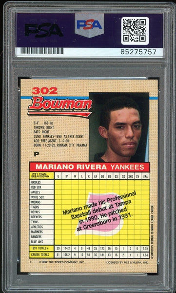1992 Bowman #302 Mariano Rivera RC Rookie On Card PSA/DNA Auto GEM MINT 10