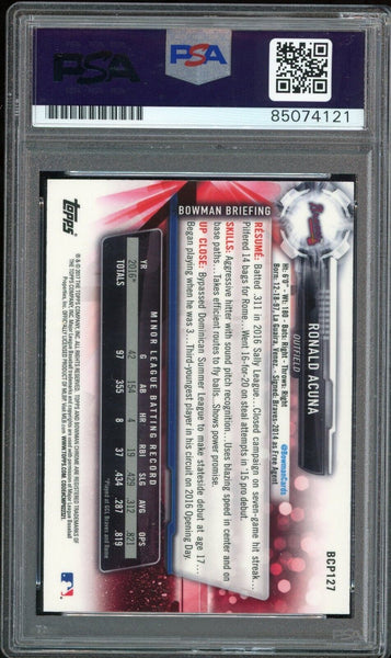 2017 Bowman Chrome #BCP127 Ronald Acuna Jr. RC Rookie PSA/DNA Auto GEM MINT 10