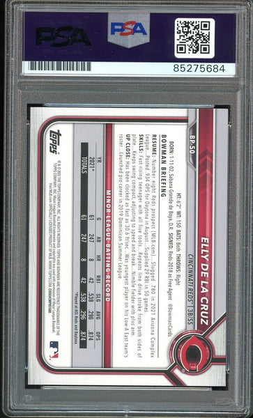 2022 Bowman Prospects #BP-50 Elly De LA Cruz RC On Card PSA/DNA Auto GEM MINT 10
