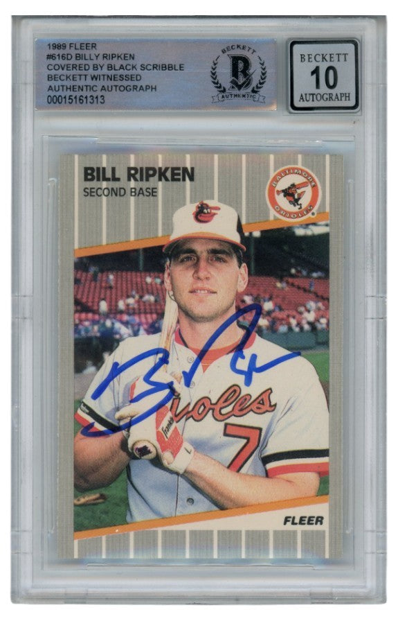 The number in the listing title is just an inventory sku for our records and is not the authentication number. The item pictured is the exact image you will receive, please see photos for condition. This is a Baltimore Orioles 1989 Fleer #616 Scribble Variation Slabbed Trading Card that was personally autographed by Billy Ripken. Includes a certificate of authenticity from Beckett Authentication Services (BAS) and Denver Autographs. FREE SHIPPING within the USA on orders over $10!