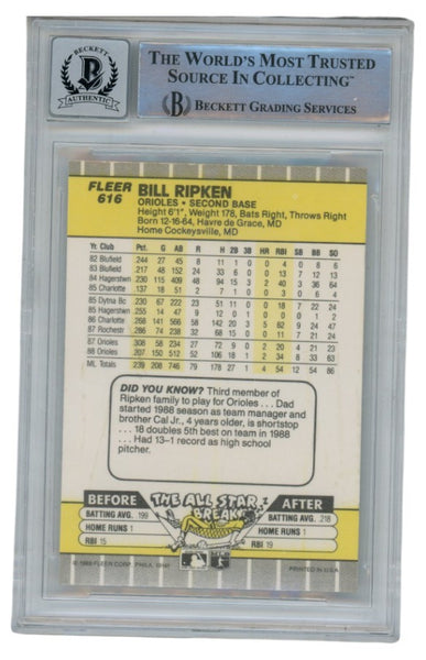 Billy Ripken Autographed 1989 Fleer #616 Error Card 10 Grade Beckett 52526