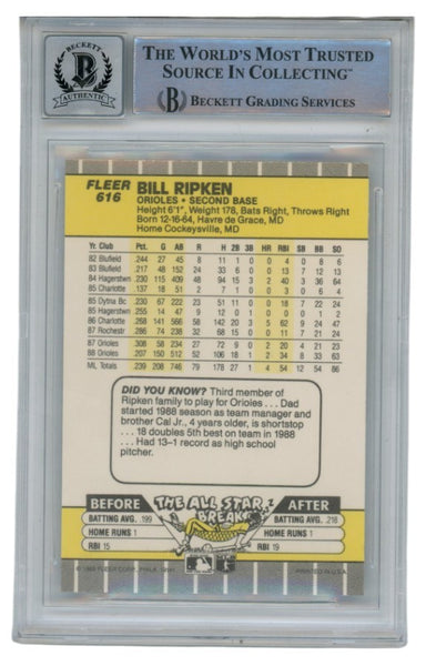 Billy Ripken Autographed 1989 Fleer #616 Error Card 10 Grade Beckett 52535