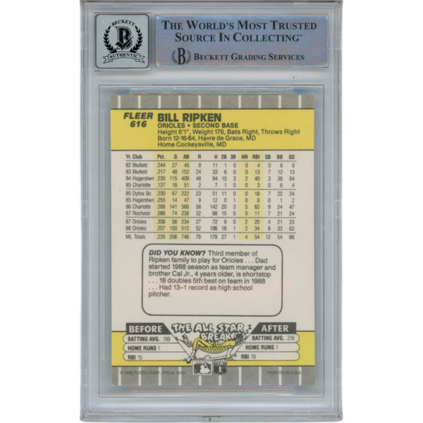 Billy Ripken Autographed 1989 Fleer 616 Trading Card 10 Grade Beckett 49336