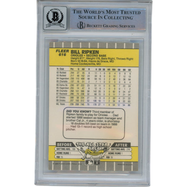 Billy Ripken Autographed 1989 Fleer 616 Trading Card 10 Grade Beckett 49363
