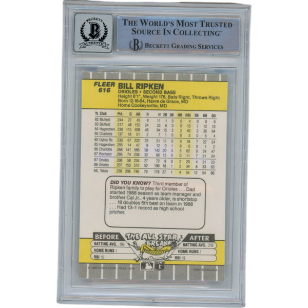Billy Ripken Autographed 1989 Fleer 616 Trading Card 10 Grade Beckett 49369