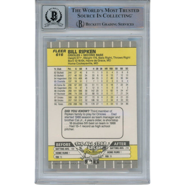 Billy Ripken Autographed 1989 Fleer 616 Trading Card 10 Grade Beckett 49371