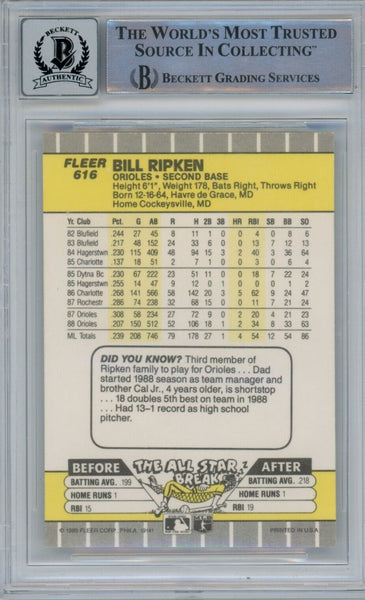 Billy Ripken Autographed/Signed 1989 Fleer 616 Trading Card Beckett 47160
