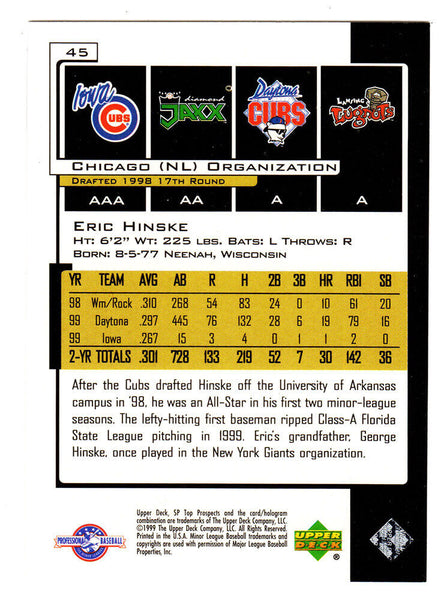 Eric Hinske Signed 2000 SP Topps Prospect rookie baseball trading card #45. Item comes with a Schwartz Sports Memorabilia tamper-proof numbered hologram (on back of physical card) and Certificate of Authenticity which can be verified online.