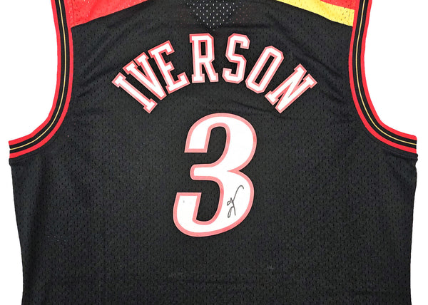 This is a Black Authentic Mitchell & Ness Philadelphia 76ers 10-05-06 HWC Swingman Jersey that has been hand signed by Allen Iverson. This jersey is Size L. This item has been witnessed and certified authentic by Beckett Authentication (BAS) and comes with their tamper-proof witness sticker.