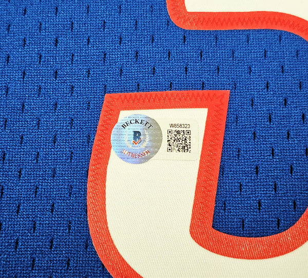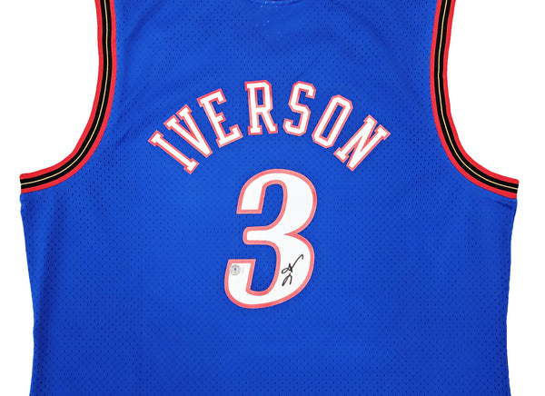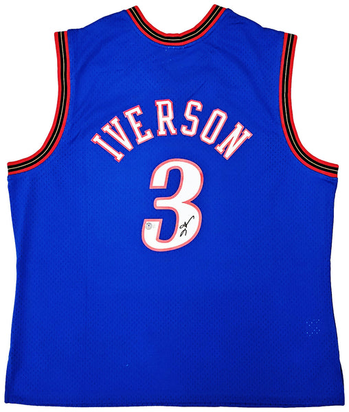 This is a Blue Authentic Mitchell & Ness Philadelphia 76ers 1999-00 HWC Swingman Jersey that has been hand signed by Allen Iverson. This jersey is Size XXL. This item has been witnessed and certified authentic by Beckett Authentication (BAS) and comes with their tamper-proof witness sticker.