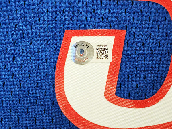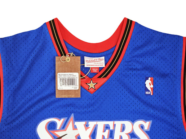 This is a Blue Authentic Mitchell & Ness Philadelphia 76ers 1999-00 HWC Swingman Jersey that has been hand signed by Allen Iverson. This jersey is Size XL. This item has been witnessed and certified authentic by Beckett Authentication (BAS) and comes with their tamper-proof witness sticker.