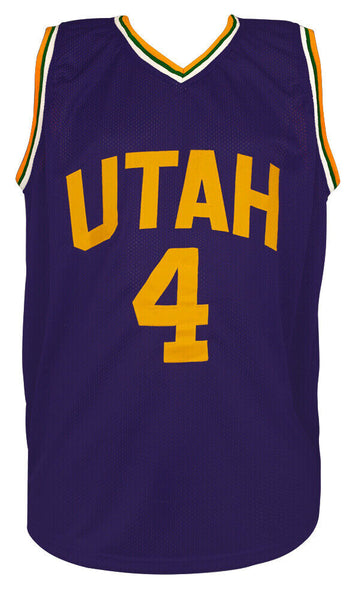 Adrian Dantley signed purple throwback custom basketball jersey with 'HOF 08' inscription. Item comes with a Schwartz Sports Memorabilia tamper-proof numbered hologram and Certificate of Authenticity which can be verified online. Jersey is size XL.