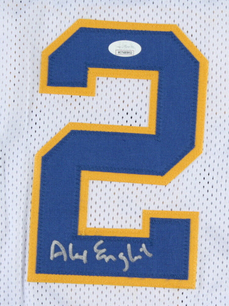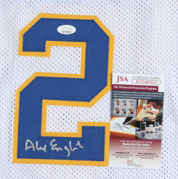 Custom on-court style jersey. Everything is sewn on, size XL. Has been hand-signed by Alex English (HOF).The lot / autograph(s) includes an official James Spence Authentication (JSA) hologram and matching COA for authenticity purposes. The signing of this item was witnessed by JSA.Authentication: JSA COA