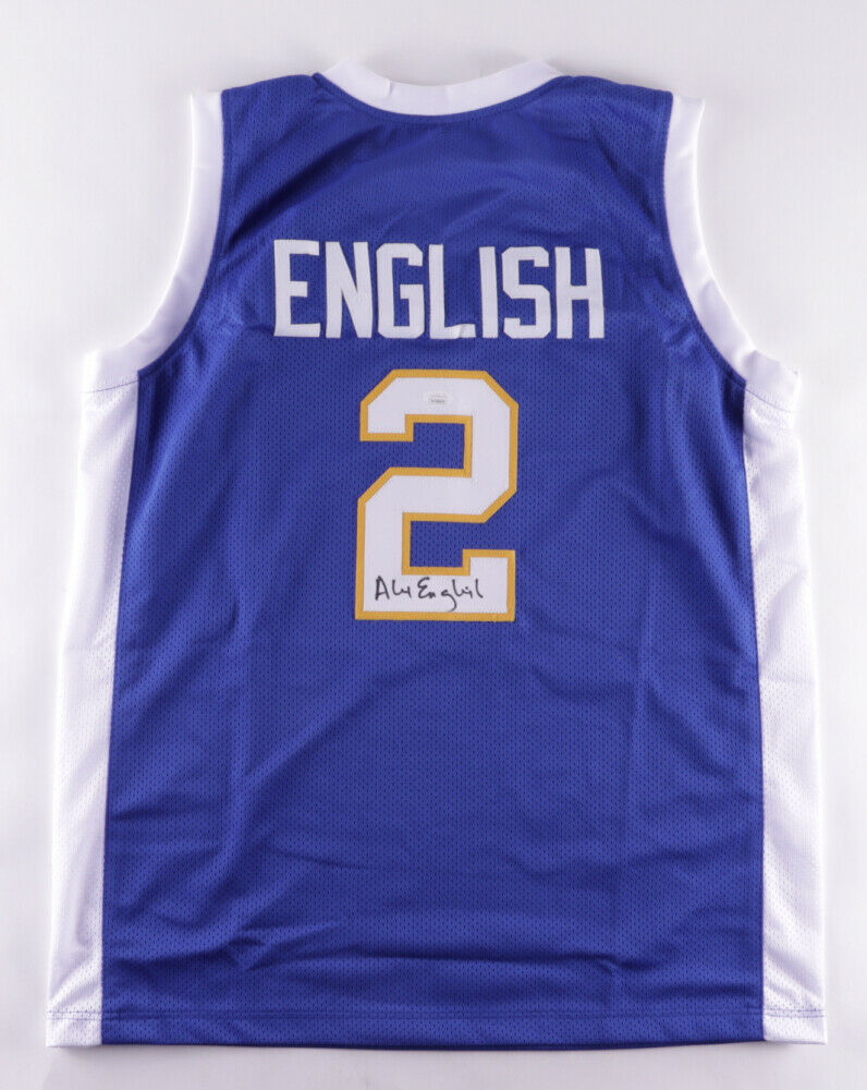 Custom on-court style jersey. Everything is sewn on, size XL. Has been hand-signed by Alex English (HOF).The lot / autograph(s) includes an official James Spence Authentication (JSA) hologram and matching COA for authenticity purposes. The signing of this item was witnessed by JSA.Authentication: JSA COA