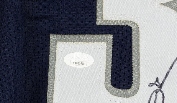 Featured is an Allen Iverson signed custom blue pro style basketball jersey. This jersey was hand signed by Allen Iverson and has been authenticated by JSA authentication services. Included with the jersey is a JSA hologram and certificate of authentication.This is a custom jersey and not to be associated with any league or it's teams. This is intended to be an autographed collectible. SPECIFICATIONS Autographed By: Allen Iverson Team: Philadelphia 76ers Sport: Basketball Authentication: James Spence Authentication (JSA)