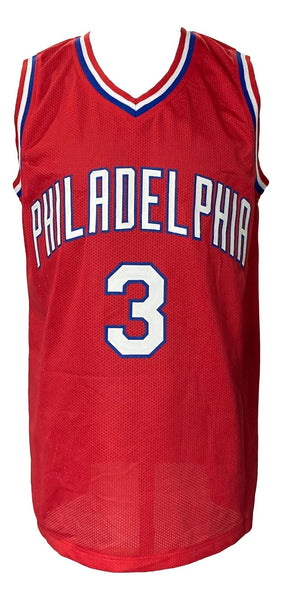 Featured is an Allen Iverson signed custom basketball jersey. This jersey has been hand signed by Iverson and comes with the JSA witnessed hologram and certificate of authenticity. This jersey features professionally sewn letters and numbers and is size XL. This jersey has no team tags or emblems and is intended as a sports collectible. This jersey would make a great addition to any sports memorabilia collection!. SPECIFICATIONS Autographed By: Allen Iverson Team: Philadelphia 76ers Sport: Basketball Authentication: James Spence Authentication (JSA)