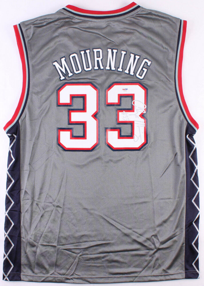 Reebok on-court style jersey. Everything is sewn on, size L. Hand-signed in silver paint pen by Alonzo Mourning (HOF). The lot / autograph(s) includes an official PSA/DNA hologram and matching COA for authenticity purposes.Authentication: PSA COA