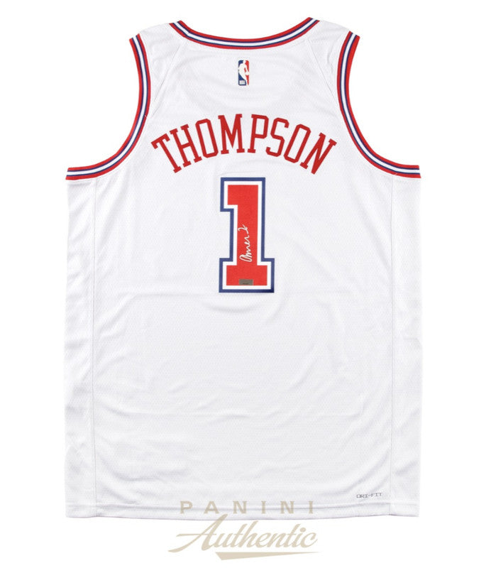 With the 4th pick in the NBA Draft, the Houston Rockets selected Amen Thompson and added him to one of the league's most exciting young cores. With his insane athleticism and nack for offensive rebounding as a rookie, Amen fits perfectly next to the other rising stars as he continues to improve all facets of his game. The ceiling for Amen Thompson is as high as they come for a young rookie entering the NBA. Support Amen Thompson as he looks to become one of the leagues budding stars with this autographed jersey!This autographed jersey includes a Panini Authentic certificate of authenticity with a unique hologram number that corresponds to the hologram on the actual collectible. These holograms protect the integrity of the product and serve to guarantee the authenticity of the signature it bears. MONEY BACK GUARANTEE! If for any reason you are not completely satisfied with the quality or authenticity of your purchase, we will gladly give you a full refund or exchange, whichever you prefer up to 30 days after purchase. Please feel free to e-mail us with any questions. Thank you. Authenticator Pre-Certified Authenticator: Panini Authenticated History of item: Thompson has signed this item in the presence of a representative from Panini Authenticated. Describe how you came to possess this item: Super Sports Center is a fully authorized dealer for Upper Deck Authenticated as well as Panini Authenticated, Mounted Memories and Steiner Sports. Other information about you and / or the item: Super Sports Center strives to deliver the most authentic in sports memorabilia from trusted companies like Mounted Memories, Steiner Sports and Upper Deck Authenticated. If it exists, we can find it for you!