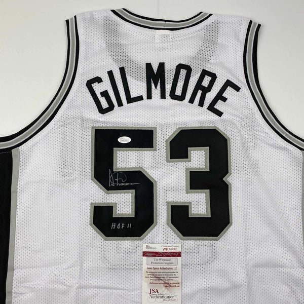 Autographed/Signed Artis Gilmore HOF 11 San Antonio White Jersey JSA COA Jersey has no brand names or logos. This is a custom jersey and was not manufactured by or in any manner associated with any professional sports league or manufacturer. This custom jersey carries no professional sports league designation. The item is intended to be an autographed collectible. The custom jersey displays the name and number of the player. This item in no way is affiliated with or connected to any professional sports organization. Size is XL.