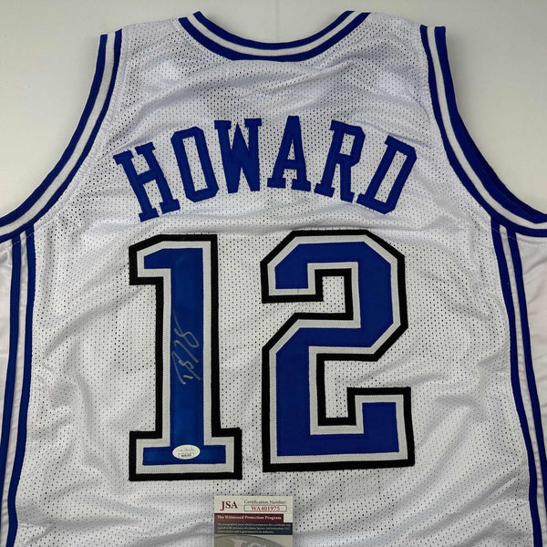 Autographed/Signed Dwight Howard Orlando White Basketball Jersey JSA COA Jersey has no brand names or logos. This is a custom jersey and was not manufactured by or in any manner associated with any professional sports league or manufacturer. This custom jersey carries no professional sports league designation. The item is intended to be an autographed collectible. The custom jersey displays the name and number of the player. This item in no way is affiliated with or connected to any professional sports organization. Size is XL.