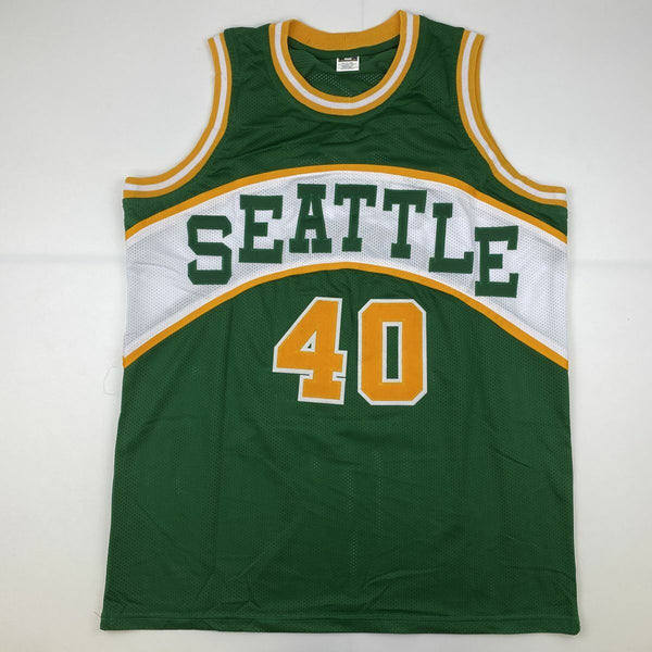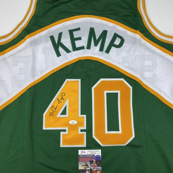 Autographed/Signed SHAWN KEMP Seattle Green Basketball Jersey JSA COA Auto This is a custom jersey and was not manufactured by or in any manner associated with any professional sports league or manufacturer. This custom jersey carries no professional sports league designation. The item is intended to be an autographed collectible. The custom jersey displays the name, number and authenticated signature of the player. This item in no way is affiliated with or connected to any professional sports organization. The autograph, as always is guaranteed to be authentic and has been certified as authentic by a third-party, trusted authenticator. Size is XL unless otherwise noted.