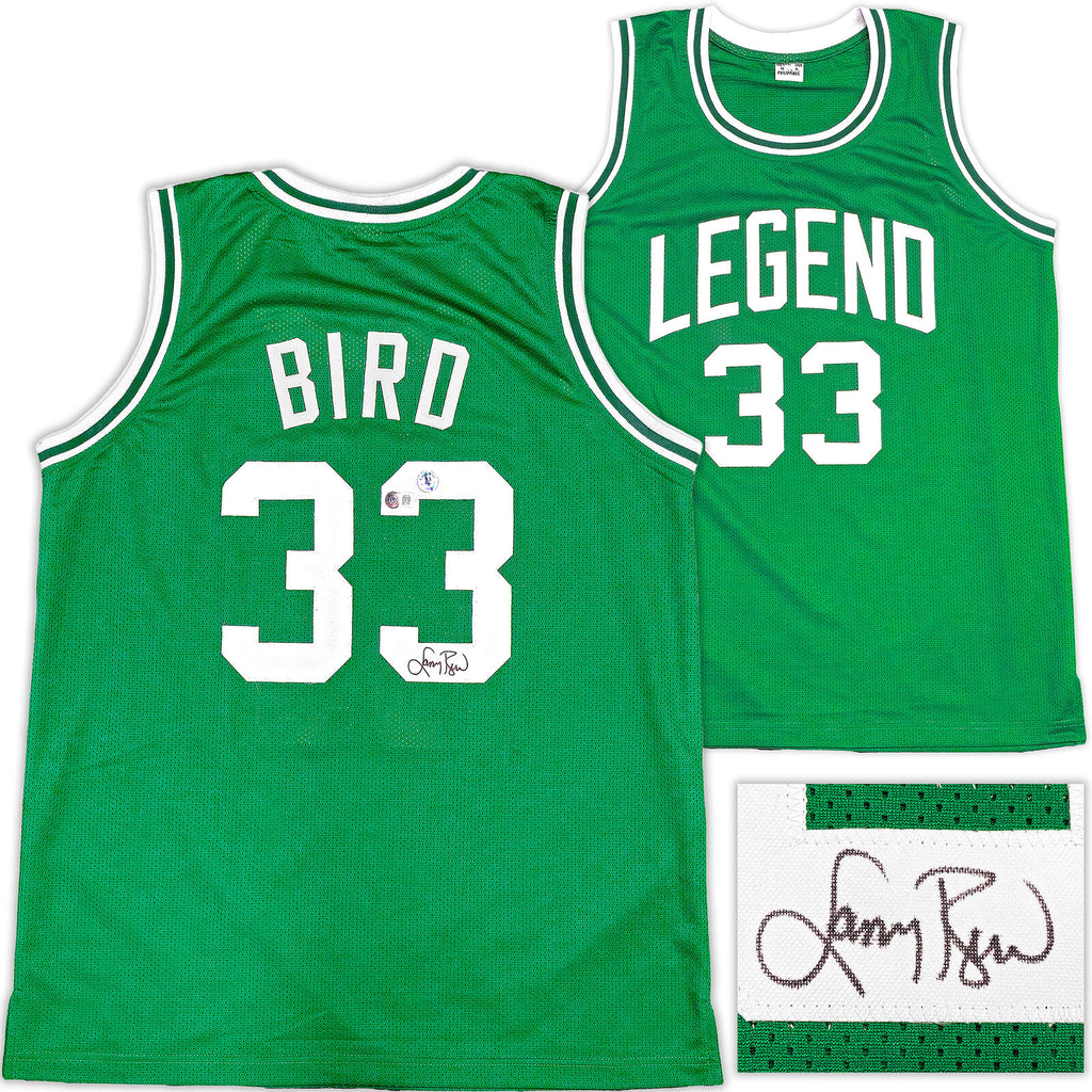 This is a Green Basketball Jersey that has been hand signed by Larry Bird. This is a custom jersey with no name brand. The approximate size is XL. It has nice sewn in name and numbers. This item has been certified authentic by Beckett Authentication (BAS) and comes with their tamper-proof QR Code sticker that can be verified on beckett-authentication.com.