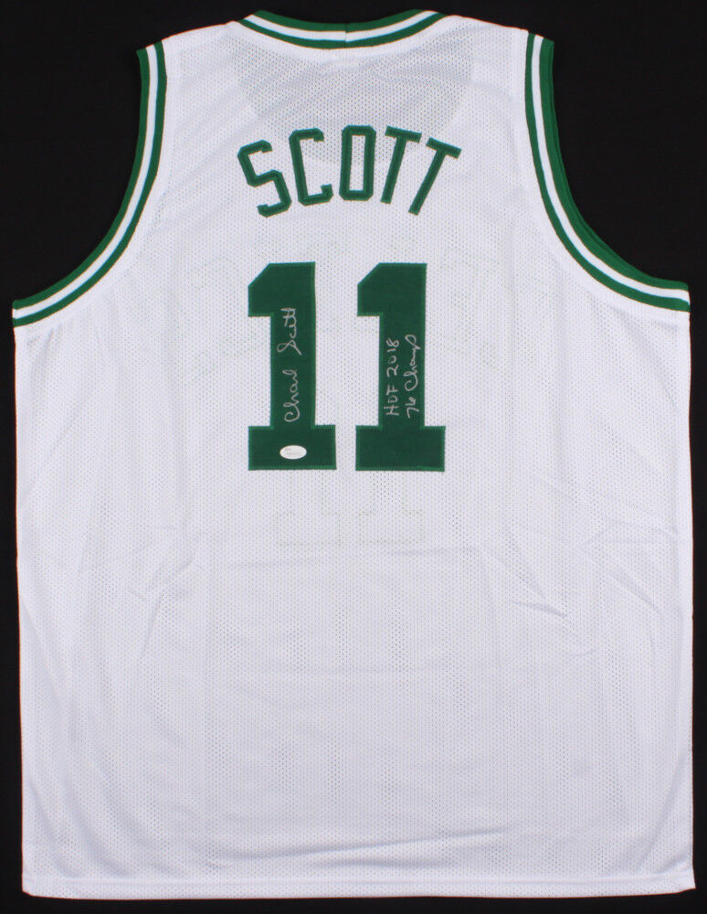 Custom on-court style jersey. Everything is sewn on, size XL. Hand-signed in black felt-tip pen by Charlie Scott (HOF). The autograph includes an official James Spence Authentication (JSA) hologram and matching COA for authenticity purposes. The signing of this item was witnessed by JSA.Authentication: JSA COA