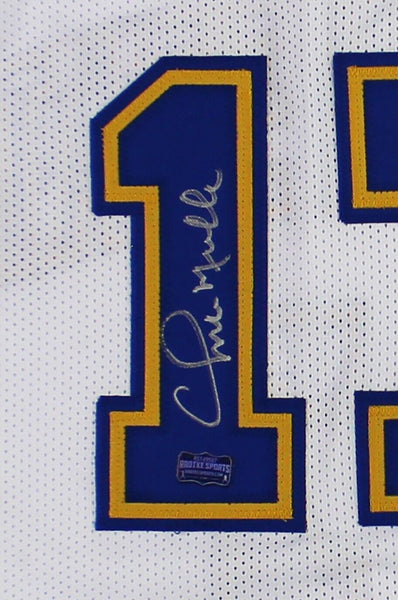 A Golden State Custom White Jersey hand signed by Chris Mullin. The item and signature are in excellent condition. Chris was drafted into the NBA in 1985 as a first round draft pick. Chris is a 5xNBA All-star, All-NBA First Team and he won the John R. Wooden Award. AUTHENTICATION: Your item is tagged with a SmarTag powered by Prova Technology, which gives you digital access to your items authentication records, which includes a proof picture from the signing.