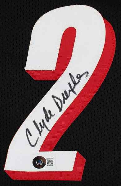 Clyde Drexler Authentic Signed Black Pro Style Jersey Autographed BAS Witnessed