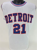 This autographed jersey has been personally hand-signed by Dave Bing of the Detroit Pistons. Bing added the inscription "HOF 1990" along with his signature. This autograph is certified by James Spence Authentication's (JSA) Witnessed Protection Program. That means that a JSA representative was present when this item was signed. It comes with the numbered hologram and matching Certificate of Authenticity.Custom on-field style jerseys are a more affordable option for autograph seekers. These jerseys do not have any brand name or tags and are made in the Philippines. They feature stitched on names and numbers and are made to look very similar to the on-field jerseys that the players wear. These custom jerseys are very commonly used in the memorabilia industry.