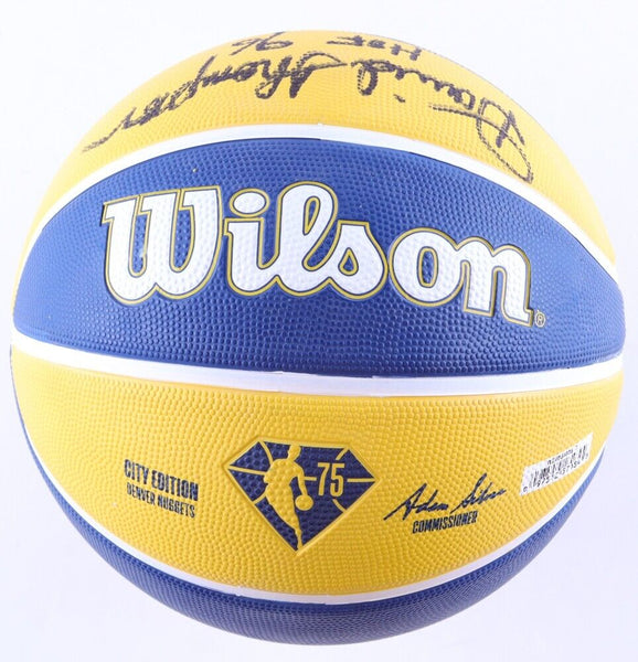 Wilson City Edition Denver Nuggets Basketball. Hand-signed and inscribed by David Thompson (Denver Nuggets, Seattle Supersonics, HOF).The autograph includes an official James Spence Authentication (JSA) hologram for authenticity purposes. The signing of this item was witnessed by JSA.Authentication: JSA Hologram