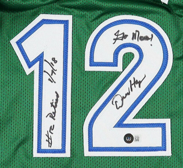 Custom on-court style jersey. Everything is sewn on, size XL. Hand-signed and inscribed by Derek Harper.The autograph includes an official Beckett Authentication Services serially numbered hologram for authenticity purposes. The signing of this item was witnessed by Beckett.Authentication: Beckett Hologram