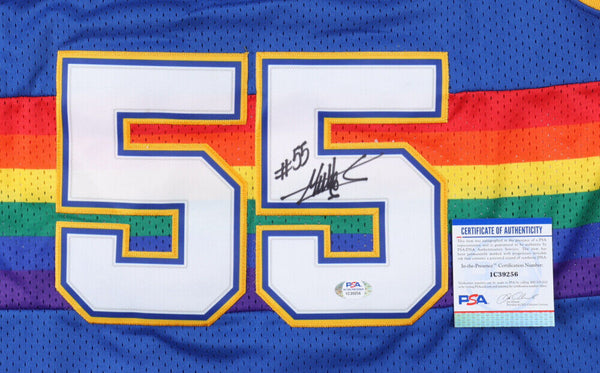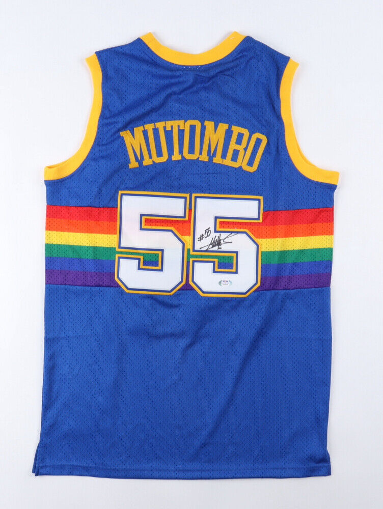 Mitchell & Ness on-court style jersey. Everything sewn on, size L. Hand-signed by Dikembe Mutombo (Atlanta Hawks, HOF).The lot / autograph(s) includes an official PSA/DNA hologram and matching COA for authenticity purposes. The signing of this item was witnessed by PSA.Authentication: PSA COA Shop our eBay store / Friendly Confines Collectibles for thousands of different autographed jerseys