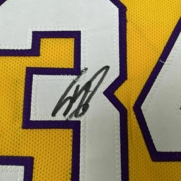 FRAMED Autographed/Signed SHAQUILLE SHAQ O'NEAL 33x42 LA Yellow Jersey JSA COA The item is professionally framed & matted with two 8x10 photos, measures 33"x42" and is ready to be hung in your man cave! NOTE: COA card will be mounted on the back of the frame, not inside it on top of the jersey as seen in the picture. Please allow up to 5 business days for the item to be framed, packaged safely, and picked up by UPS. Photo and matting requests can be made.