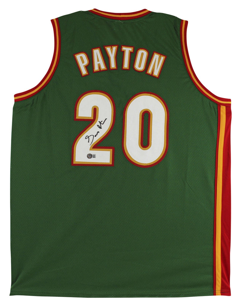 This Autographed Green Pro Style Jersey has been Personally Signed by Gary Payton of the Seattle Supersonics. This item is 100% Authentic to include a hologram by Beckett Authentication Services. This item will come with the new Beckett Authentication hologram that has a scannable QR code rather than the traditional COA. If you would like to have a COA, you are welcome to reach out to Beckett for a printed certification once you receive your item. This is a BAS Witnessed Protection Program item which means a Beckett Authentication Service representative was present when this item was being signed. We conducted an autograph signing with Gary Payton where multiples of the same item were signed. While the photographs are representative of this item, the size, placement and strength of the signature may vary. Each item is hand signed, therefore, each autograph is unique. This item can be verified through BAS Witnessed. This is a X-Large sized, non-branded, custom-stitched Jersey.