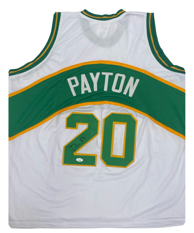 Gary Payton Autographed 'The Glove' Green and White #20 Custom Jersey JSA Witnessed Includes hologram! Payton's signature is guaranteed authentic through the JSA hologram system. MONEY BACK GUARANTEE! If for any reason you are not completely satisfied with the quality or authenticity of your purchase, we will gladly give you a full refund or exchange, whichever you prefer up to 30 days after purchase. Please feel free to e-mail us with any questions. Thank you. Authenticator Pre-Certified Authenticator: JSA Authenticated History of item: Gary Payton has signed this item in the presence of a representative from JSA. Describe how you came to possess this item: Super Sports Center is a fully authorized dealer for Upper Deck Authenticated as well as Mounted Memories and Steiner Sports. Other information about you and / or the item: Super Sports Center strives to deliver the most authentic in sports memorabilia from trusted companies like Mounted Memories, Steiner Sports and Upper Deck Authenticated. If it exists, we can find it for you!