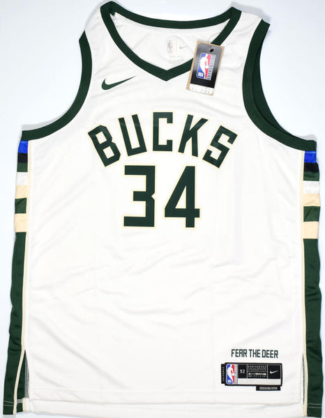 Giannis Antetokounmpo Autographed Milwaukee Bucks 22-23 White Swingman Association Jersey-Beckett W Hologram *Silver This is a hand autographed Basketball Jersey of Giannis Antetokounmpo of the Milwaukee Bucks. This is an NBA Nike Authentic 22-23 Swingman Association White Milwaukee Bucks Jersey. This item has a Beckett Witnessed Authentication, which comes with a Beckett numbered hologram and a QR code for verification. It was signed either at a public autograph appearance or a private signing. This is a stock photo of the item. Although you may not receive this exact item, the item you receive is virtually identical and brand new in great shape.